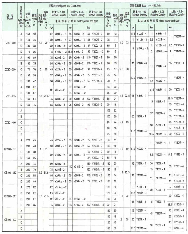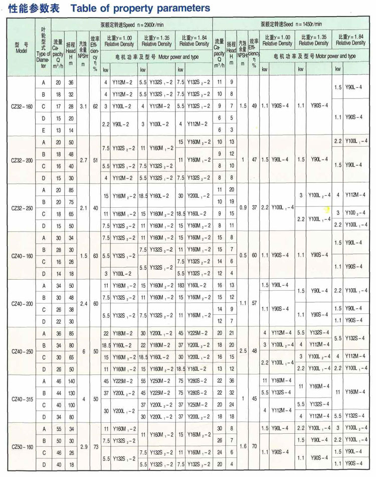 CZ系列標(biāo)準(zhǔn)化工泵的性能范圍包括了舊系列標(biāo)準(zhǔn)化工泵所有性能,其效率、汽蝕性能等指標(biāo)均超過舊型泵,可與舊型泵進行單機互換。